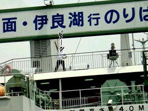 でも速く伊勢まで行けるからね、 ぶらほね父さんやかきさんは伊勢道路を気にいってくれたようで、 伊勢道路を抜けたら、もう内宮。 その後、おかげ横丁をぶらぶらして、 くーっ しかもこの日は、sololyさん、何を思ったのか とても楽しい2日間ももう終盤、k66さんとは内宮でお別れ、 船もあっという間に到着し、みなさん慌ただしく乗船の準備。