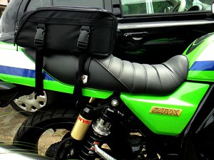お盆ですねー 連休ならではの高速の渋滞。 このバッグの良いところはですね、ベルトをシートを外して通すのではなくて、こうやって、 フックやバーにひっかけて固定するところです。 今まで持っていたシートバッグは、バリオスの時は問題なかったのですが、 でもネットだと開け閉めが簡単にできないからなー 良いのないかな、と探していたら見つかりました!