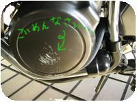 「雨降りそうなので失礼します」と仕事後、愛想もなく職場を後にしました。 あいにく私の家方面には雲がかかっているのです‥!今日はバリオス君と改めて、初ドライブの予定なので家路を急ぎます! ジャージ出勤だったため(作業があったので)、家につくとダッシュでメイク直しと着替えです。ほんとにデートのよう(〃 ̄ω ̄〃ゞ 緊急停止用のボタンを押してあることに約10分気が付かず、エンジンがかからない‥と凹み、チョークをいろってみるも、セルすら回らないのに‥としょんぼりです。 誰ですか、あのボタン押したの‥! ‥‥‥‥‥‥‥‥私か。。。orz とりあえずご近所をぐるぐるまわります。 ウオーミングアップです。止まったり、発進したりと繰り返し、意外とバリオス君はクラッチつなぎやすいなあ‥ と、彼のいいところを発見です。ついでに近所の公園の駐車場が、丁度小さな円を描いて走るのに丁度いいことを発見! 教習の最後の方で、直径3mくらい?の円をハンドル一杯にきったまま低速で回るというのをやったのです。 あれがものすごく苦手だったので、これは練習しとかな!と 一速でさっそく練習開始です! 教習車よりもいい感じで回ります♪ 足を時々つくけれど、バリオス君と私の相性はピッタリみたいです!!! 上がるテンション、苦手なことができているという喜び!! きっとバリオス君と一緒だから!! 半クラで低速も慣れてきた。 もっと低速!もっと遅く!もっと遅く!!もっと遅くだ!!! 突如、私に全体重を預けるバリオス君(!) あ、あわ、あわ、あわわわわわ ちょ、まって ちょっと待って そんな大胆な! あ、あかん‥!わ、わたしもう‥!!!! ガシャン‥ GYAAAAAAAAAAAAAAA!!!!! ┗(|||`□´|||;;)┛ そんな、、、、 そんな、、、、 全走行距離20kmで、 た ち ご け ‥ ここで教習所では起こりえなかった事が。 ガソリン漏れてきたー!!!!( ̄□||||!! 引き起こしは教習所ラストにて会得していたので、急いでエンジンを切り引き起こします。 !!!上がらん!!! ハンドルが内側に切れているからか、持ち上がってもそこから先、タイヤが動いてしうのです。 何度もトライしてみるも、持ち上げる、タイヤ動いてバイクも動く、持ち上がらないの繰り返し。。。 バリオス君!! 急いで家に電話。いっしょに引き起こして、とSOS。 5分後母到着。ともに引き起こしてようやくバリオス君が立ちました‥。 ほっとして、エンジンを回すも ‥あれ‥??? ギアが、、ギアが、、Nから一速へ入らない‥?? バリオス君どうしちゃったのか。Nでずっと走ってバイク屋さんへ持っていくのは厳しいです ‥ロードサービスか‥‥、と思っていると目の前に颯爽と、ぱっと見怖い感じの50代に見える男性が。「大丈夫かー?」 なんと‥! 私が倒してしまったのを見ていたらしく、用事があったので、一度はその前を通りすぎたものの、用事を済ませて戻ってきてくれたとのことなのです!! か、感激‥!!! 「あ、あんまり大丈夫じゃないです‥」 「貸してみ!」 と、なんと颯爽とバイクにまたがったのです!! びっくりした!この男性、間違いなくライダー!? エンジンをふかせてギアをチェック。 なんと、ギアのバー(?)が、倒れた拍子に内側に入ってしまい、スタンドのボルト(?)にあたってしまい、Nから下へ入らないらしい。 なるほど‥ ![]() 男性と色々話しをして、 「自分のやったら無茶してひっぱるんやけどなあ‥、念のためRB呼んだらええわ」とのことだったので、初ロードサービス。 ありがたいありがたい‥! RBの方もグイーッとギアをひっぱって位置を戻して終わりだったので苦笑いでした お騒がせしちゃって申し訳ない。RBが来るまで付き合ってくださった男性は、同じ町内に住んでいるらしく、若いころは750ccを乗り回していたようです。今はバイクから離れているようだけど、バリオス君に颯爽とまたがった姿、彼の中にライダーを見ました バイクから降りてもライダーなんだ‥ なんてかっこいい。ご自分の経験を語ってくださって、グローブは革がいいということや、バイク用のジャケットがいるよって、何かあったとき擦り傷じゃすまないよって語ってくれました。転倒したときの後遺症があるんだって‥。 すごく親切でワイルドで素敵な男性でした。ありがとうございました! エンジンガード 買おう‥‥。。。 なぜ、もっと早く‥!サトコさんもエンジンガードの話をしてたのに! バリオス君、ごめんね。 復活したバリオス君は、怪我にも負けずに走ってくれました。 今日はいろんなことがあったのでまた書きます^^ 本日走行距離36km。 1回目の13kmと比べるとちょっと伸びました♪♪ お疲れ様でしたバリオス君。 今日思ったのは、私はまだ初心者なんだということを肝に命じなきゃ、ということです。周りがどんだけ飛ばしてても、私はバリオス君と自分のペースでしばらく走る ![]() あと、エンジンガード ![]() もうこけません ごめんね、バリオス君![]() バイクブログ 初心者ライダー ポチッと応援していただけたら大喜びです ![]() PR